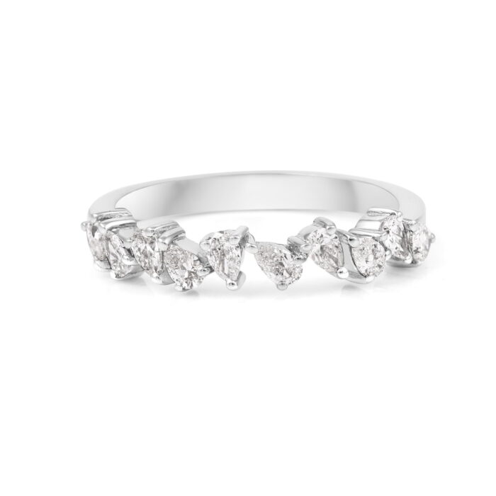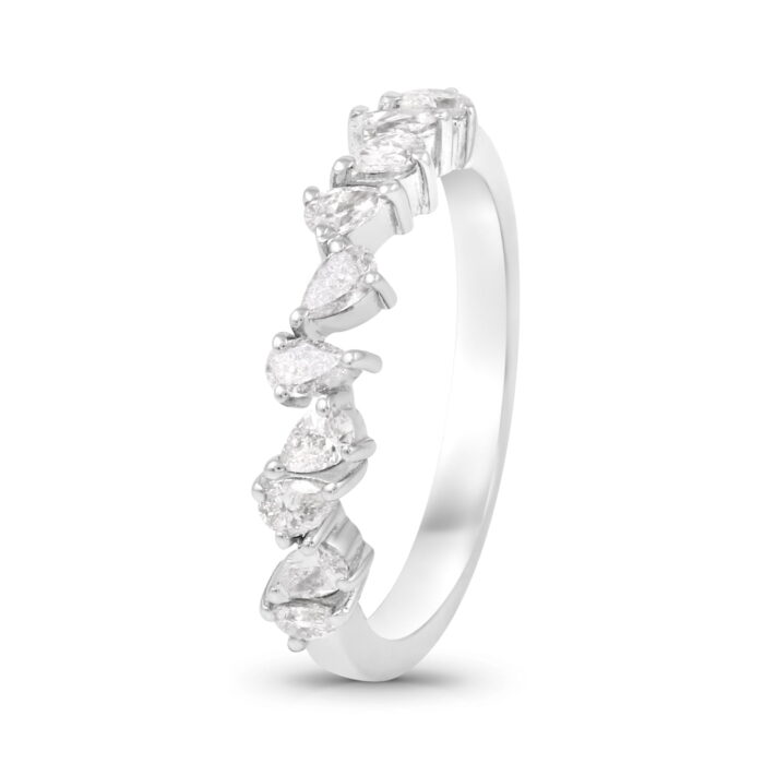 Here Is The Dainty Diamond Stacking Ring You Have Been Dreaming Of! This Versatile And On Trend Pear Drop Diamond Ring Is Made In 14K Solid White Gold.